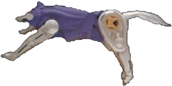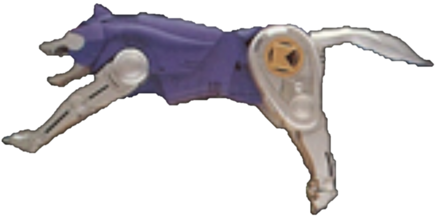 The Wolf Ninjazord is the third Zord of Billy Cranston, the Blue Ranger. When fighting alone, he was capable of doing flips and striking enemies with his tail. He was also shown to have blinding speed and agility. In the movie, he was shown biting one of Ivan Ooze's Ectomorphicons, and not letting go. He forms the left arm of the Ninja Megazord. He also lacked the Power Glove on its head; instead, the head functioned as the hand, with the lower jaw functioning as an opposable thumb.