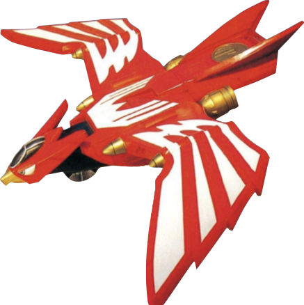 HurricaneHawk (ハリケンホーク Hariken Hōku) is HurricaneRed's personal mecha in the form of a giant robotic red hawk with ninja fire magic. When Oboro launches it from the hangar, it removes the cloak from when it is posing as a commercial jet. Its attack is the Karakuri Ninpou: Fire Hawk (カラクリ忍法・火炎鷹 Karakuri Ninpō: Kaen Daka), a trail of gas from its wings which it ignites to perform a flaming divebomb attack. Forms the head of Karakuri Giant Senpujin.