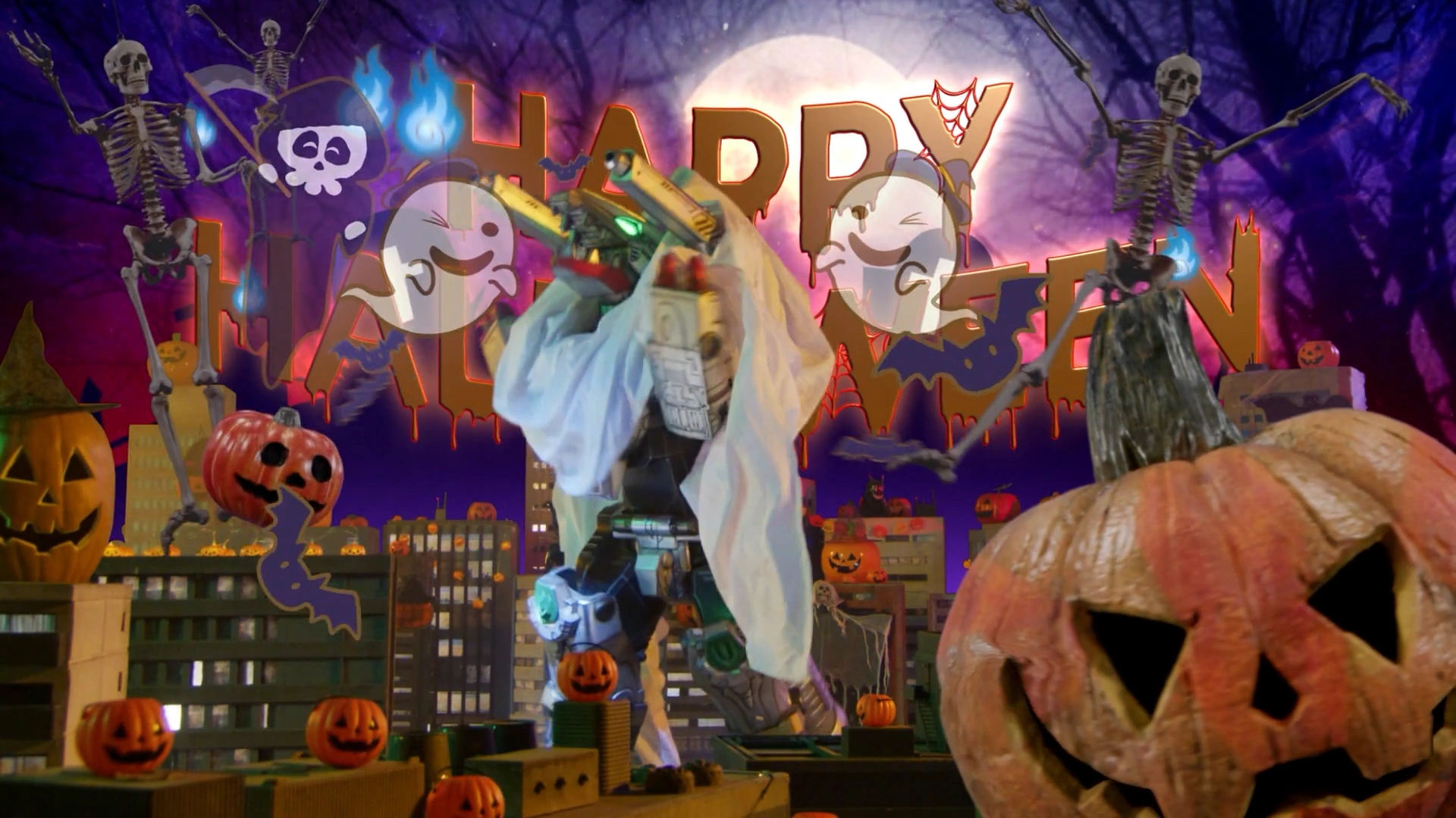Halloween. Today is the happiest day for everyone working at the Colorful Candy Cafe! At least, it was supposed to be… On the day everything is prepared, people are convinced that Tojitendo is somehow behind all the "Trick-or-Treaters" this year! As they expected, Halloween World was behind all of this! Although Hakaizer stands between Halloween World and the Zenkaigers, Halloween World's pumpkin head suddenly goes flying off as his own power level drops significantly! The mobs of angry candy-goers subsides for a while, however, once his power returns…! Halloween. Today is the day of our crusade! The Zenkaigers, the World Pirates, Hakaizer, and even Stacy joins in the crazy "trick-or-treating" pumpkin fray! Halloween. Is an impactful day for our warrior fighters!