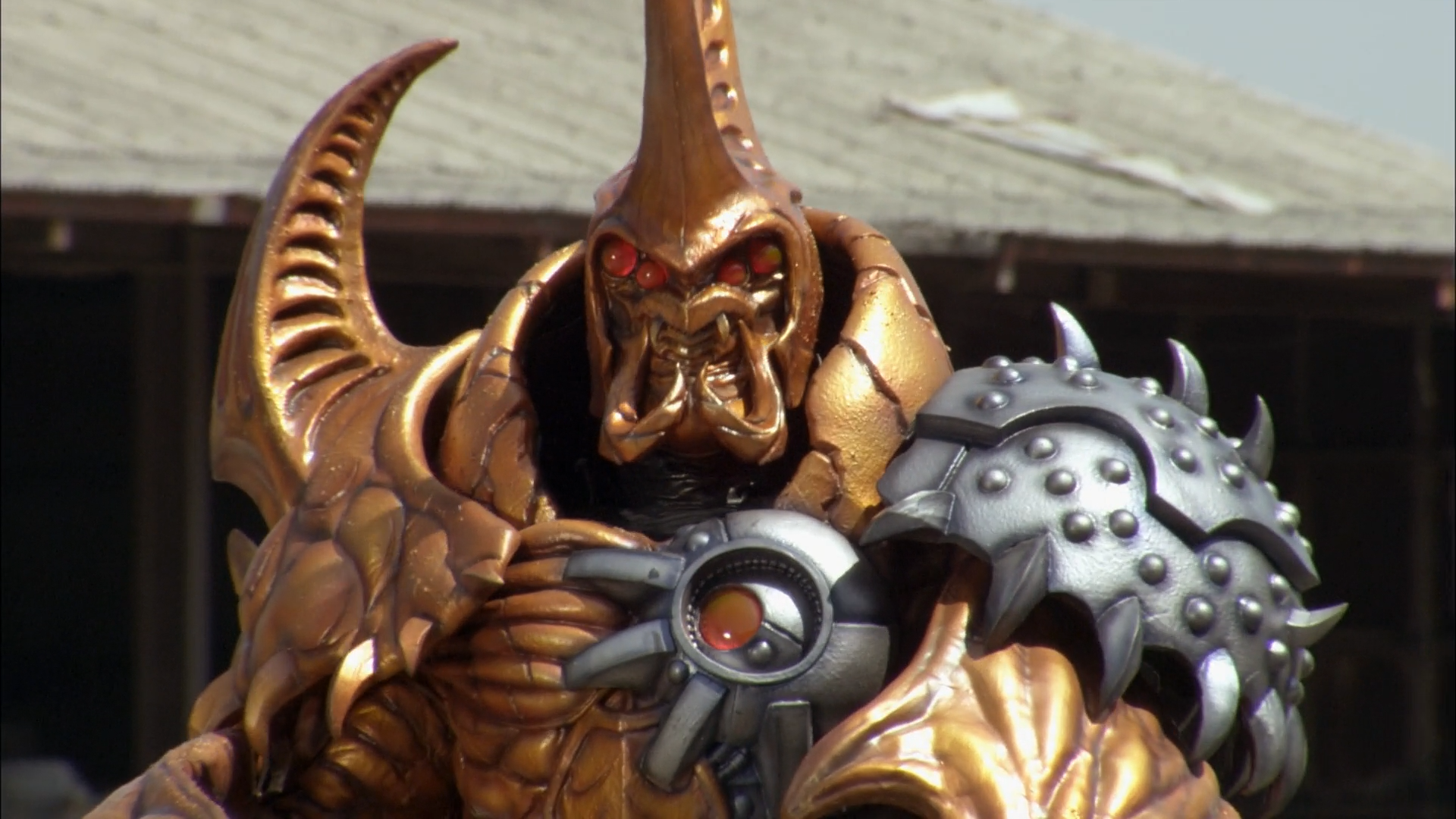 Osogain was assigned by Damaras to set up a beachhead for a full Zangyack invasion in Warz Gill's temporary absence. Attacking a construction site where he intends to built the Zangyack outpost when his operation is met by Gai Ikari's intervention. With his Gokai Cellular and Ranger Key taken by Captain Marvelous, he nevertheless fights the Gomin and Sugomin under Osogain's command to protect the construction workers. Unfortunately, he is over powered but refuses to back down. Just in the nick of time, the Gokaigers appear before Osogain can deliver the finishing blow. Marvelous gives Gai's items back to him when Gai reveals he intends to defeat the Zangyack and restore peace to the universe. With Gokai Silver as the official sixth Gokaiger, the whole crew battles Osogain's forces. They become the Shinkengers (after some miscommunication about KingRanger and Shinken Gold) to defeat the Sugomin and then become past Silver Rangers (with Gokai Silver as himself) to wear Osogain down for Gokai Silver use the Gokai Spear's Gokai Supernova Final Wave to destroy him.