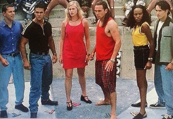 The Zeo Rangers from left to right: Rocky, Jason, Katherine, Tommy, Tanya and Adam.