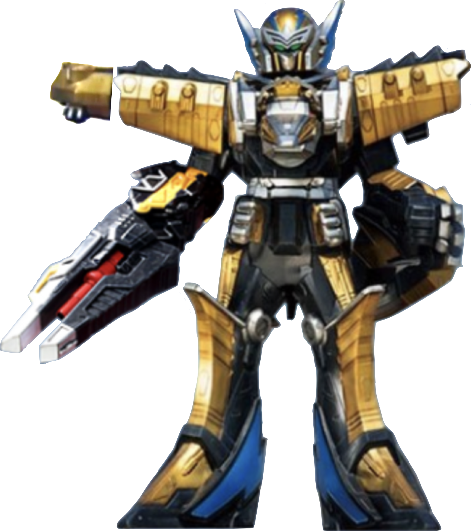 In this form, the Ptera Charge Megazord gains the Para Zord as an arm blaster.