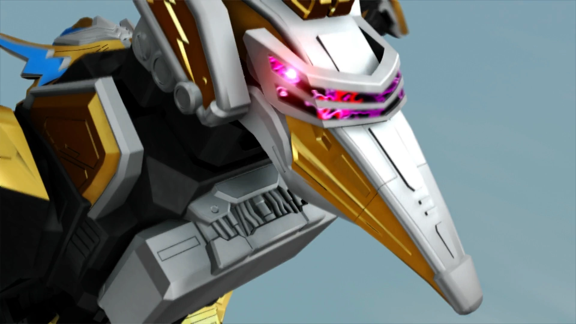 The Dino Charge Megazord Tri-Stego-Ptera Formation is the combination of the Dino Charge Megazord (Tri-Stego) Formation and the Ptera Zord. It was first formed in the episode "Sync or Swim " when the default Megazord formation failed to defeat Smokescreen.
