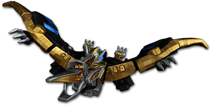 The Ptera Zord is the sentient personal Zord of the Dino Charge Gold Ranger. It possesses the spirit of the Pterodactyl that was given the Gold Energem 65 million years ago, just before Sledge's ship electro-net was disabled when his ship was bombed and the meteors therein caused the dinosaur extinction.