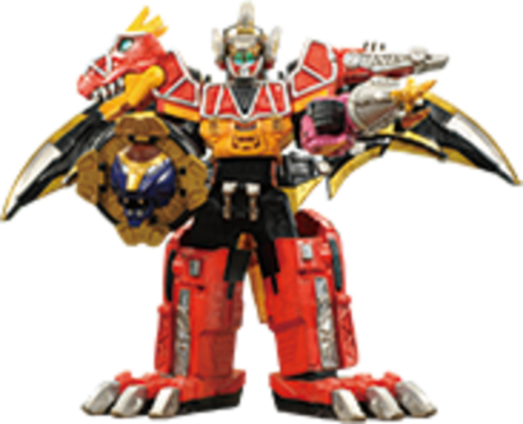 - "Dino Charge Megazord Tri-Stego-Ptera Formation, ready!"