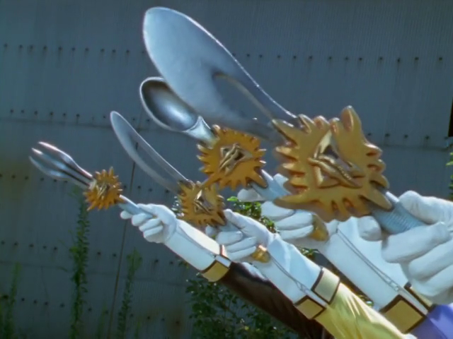 The rangers fight to retrieve their Beast King Swords after Blacksmith Org steals them to forge... a cutlery set.