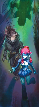 During the mid-credits scene in Kyuranger vs. Space Squad, Raptor and Hammie are enjoying lunch before the Gokaigers' Luka Millfy takes a macaroon from Raptor, but she tries to stop her and they fight over it. Hammie notices that their voices sound alike before Luka and Raptor ask her where their voices are similar. MOVIE STORY-Uchu Sentai Kyuranger vs. Space Squad