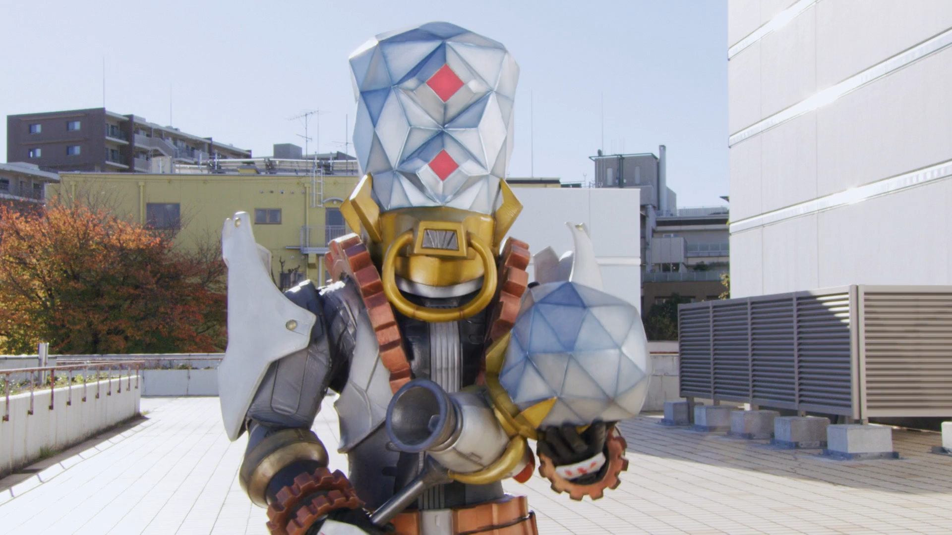 He was on top of the building where he used his Kira Mace to fired his Sapphire Eye, causing victims hit by the beam to go crazy for different kinds of jewellery.
