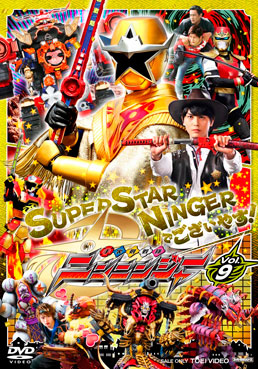 Shuriken Sentai Ninninger Volume 9 features episodes 33-36: Shinobi 33: The Kunoichi That Loved Yakumo, Shinobi 34: Enter Jiraiya, Legendary World Ninja!, Shinobi 35: Kinji Enters the Yokai Labyrinth! and Shinobi 36: Kinji, the Glorious Super Star.