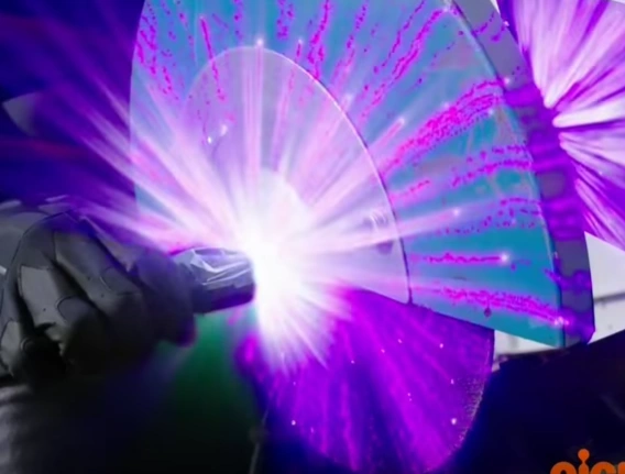 - Energy Empowerment: Slicertron can charge up his saw arm with red energy to slash at full force. When fighting in the city plaza, whilst Mayor Daniels was watching them, this knocked back Ravi.