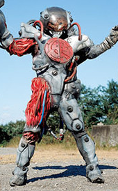 Space Brain is freed from a jewel by a thief (Shiro), and pledges allegiance to him. He helps him to steal more jewels and gold. When the Livemen find Shiro, Space Brain appears to fight them. He captures Yusuke and Jou. When Mazenda takes a child in hostage, Shiro gives her the jewel. She calls Space Brain who pledges allegiance to her. He attacks Megumi whereas she protects a girl. He tries to send Megumi in the Space Dimension, but Shiro sacrifices himself to save her, taking Mazenda with him. Mazenda attacks Yusuke, Jou and Shiro then orders to Space Brain to free her. Whereas the gate is closing behind Mazenda, Shiro retains it allowing to Yusuke, Jou and himself to be free. Space Brain fights the Livemen again and is weakened by the Triple Bazooka and destroyed by the Biomotion Buster. Enlarged by Gash, Space Brain is destroyed for good by the Super Live Robo.