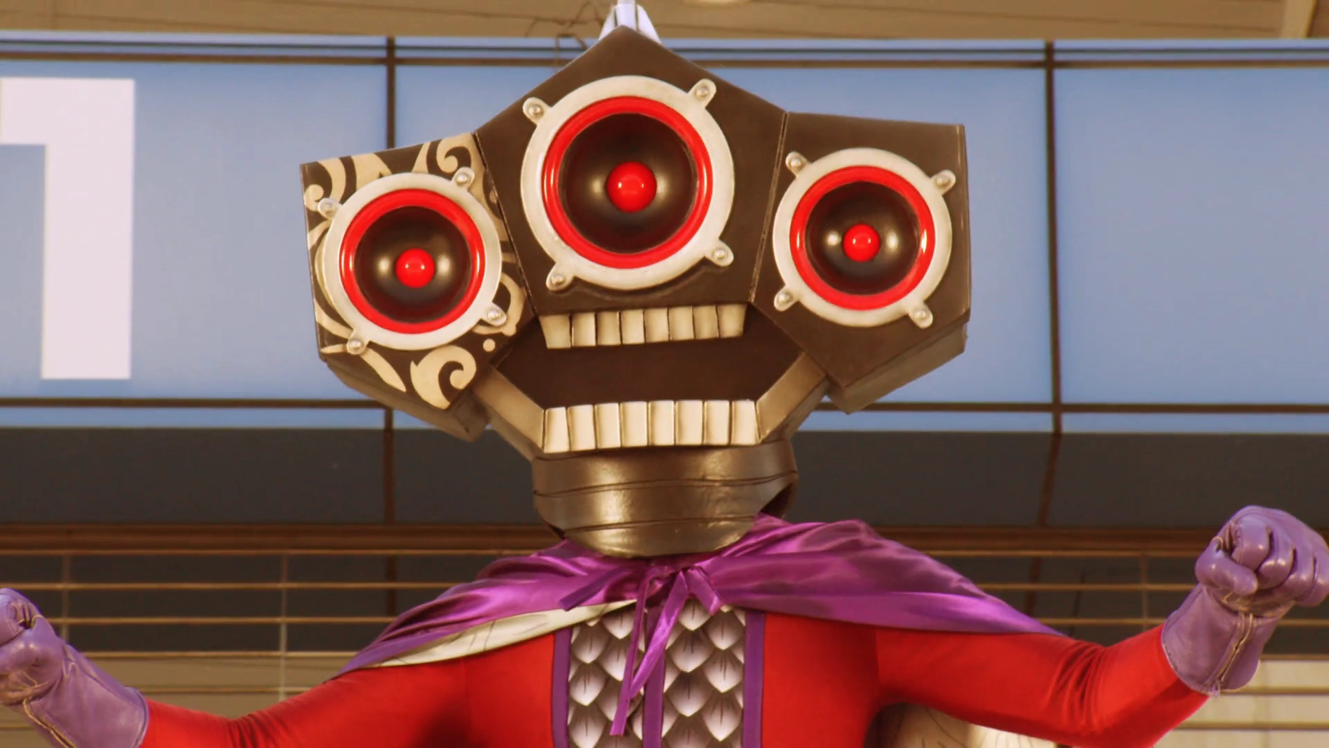 Speaker Jamen (スピーカー邪面 Supīkā Jamen) is a loudspeaker-themed red body Jamenshi of the Dark Empire Yodonheim whose dark energy was used to release Jukebox Hildon.