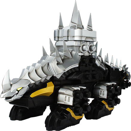 The Stego Spike Zord resembles a mechanical Stegosaurus. It has needle-like spines on its back, which fire off like rockets to bombard its opponents.