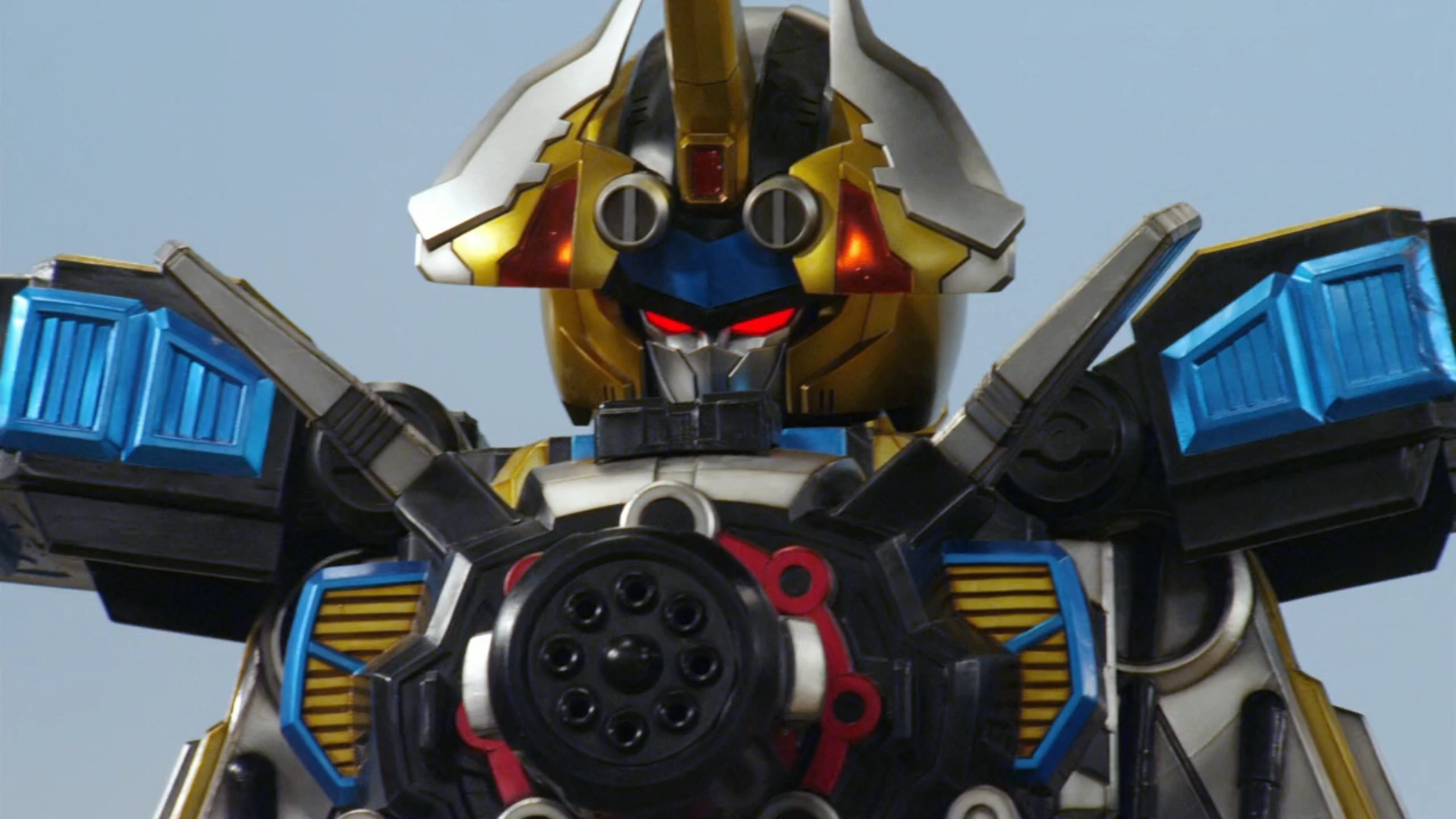 This Megazord has a special attack known as the Ultra Blast where it charges up the Chopper Zord rotors in its chest cannon and fires forth a devastating blue beam from it. When used for the first time in the episode "Game On!", this was strong enough to blast Gamerdrone back with enough force to make it let go of its lance.