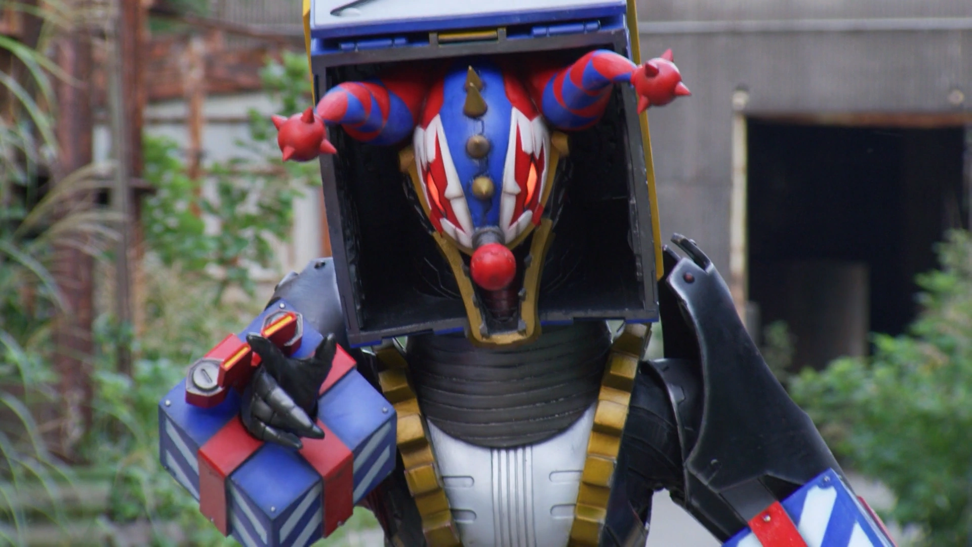 By using the Bikkuribako Tojiru Gear, he changes into Surprise Box World (ビックリバコワルド Bikkuri Bako Warudo).