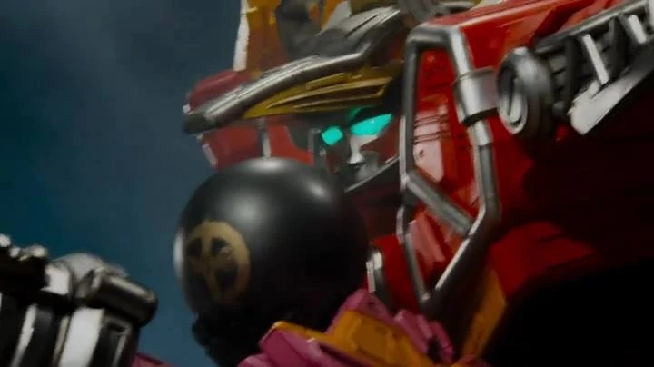 - This episode has footage of the Dino Charge Megazord that is not from Kyoryuger. The footage in question is of the Megazord grabbing the bomb and throwing it at Sledge's Ship.