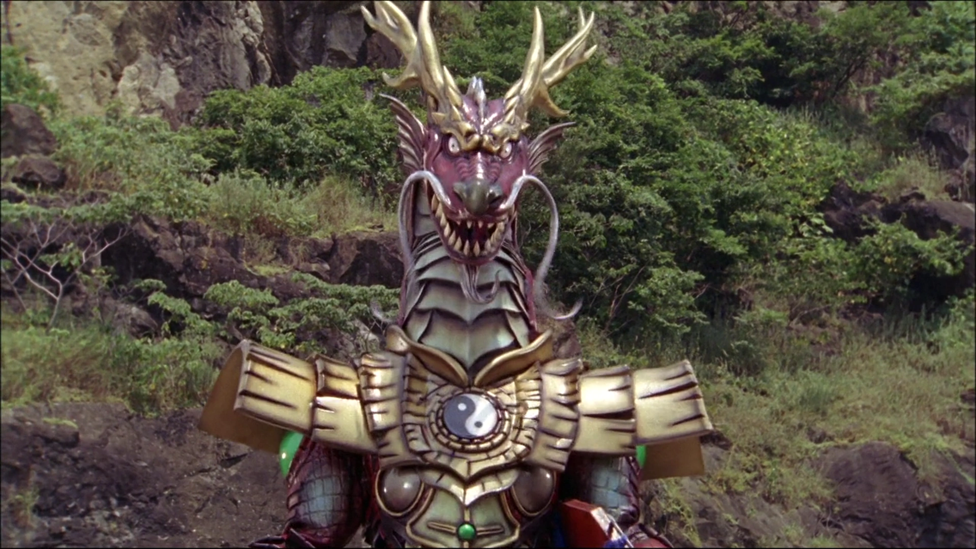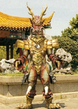 A Chinese dragon that specializes in feng shui-based strategies. With Ryuuwon, Talong intended to resurrect the "Ground Dragon," located where a Ryuketsu, a concentration of Chimeku energy produced by feng shui in the ground, found by using the "Dragon's Eye," to create a Ryuketsu. With this Precious, Talong manipulates the Feng-Shui of everything around him, giving himself the greatest luck and giving Satoru the worst luck, putting him in even mortal danger. However, thanks to the support of his teammates and a "lucky outfit" for support, Satoru overcame his bad luck and fought Talong, who, defeated, falls into the Ryuketsu, absorbing the Earth Dragon's power to become gigantic. The Boukengers fight him with DaiBouken but have a hard time, until Sakura launches machines 6, 7, 8 and 9 and strategically places them in points where the colors would activate the worst luck for Talong. Once sealed, the Dragon's Eye is recovered and the Boukenger finish him off.
