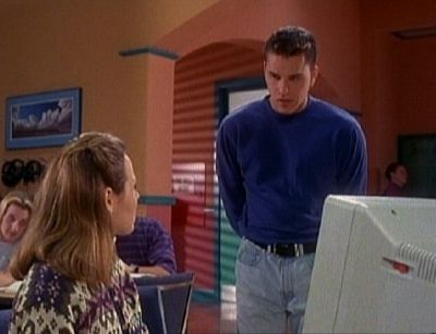 Meanwhile at Angel Grove High, Rocky and Jennifer were testing their creation and while Rocky said that it was perfect, Jennifer disagreed that there were some software problems they need to work out. Rocky was being smitten about being teamed up with Jennifer, who seemed uncomfortable. While she rebooted the hard drive, Rocky tried to ask her out to the school dance on Friday, but he accidentally fell out of his chair.