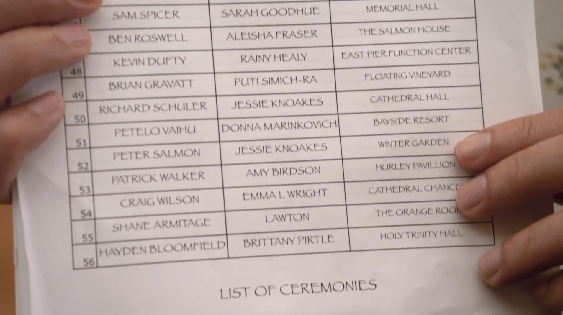 - On the list that Mentor had, if the viewers look closely the viewers can see the names of Emily and Mia's actresses, though the latter is changed by one letter.