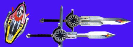 Unnamed red, yellow and pink shield and Time Force Megazord Saber (open mode used for Press Blizzard finisher)