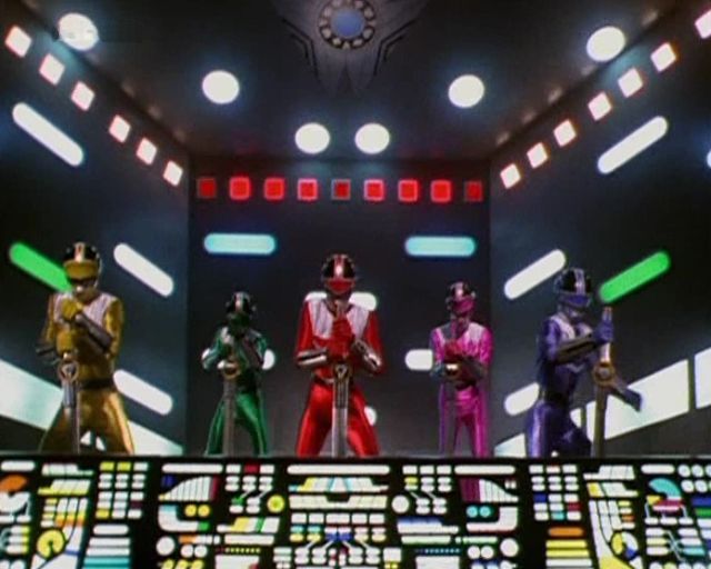 The five Time Flyers can combine into the Time Force Megazord in modes Red, Blue, and Jet Modes. It is the primary Megazord of the core five Time Force Rangers.