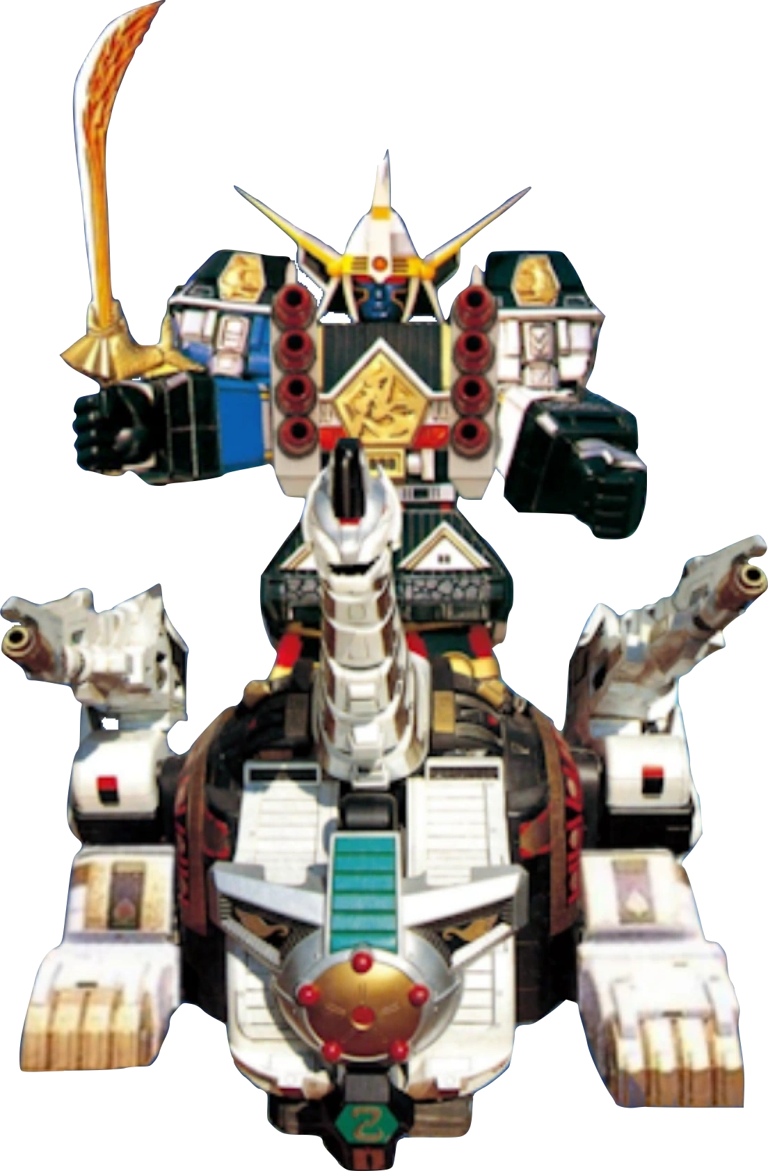 The Ultrazord, Mega Ultrazord (Japanese Version), or Dino Ultrazord - the "ultimate battle system" of the Power Rangers, is the combined form of all seven of the Zords the Power Rangers possessed in Mighty Morphin Power Rangers.