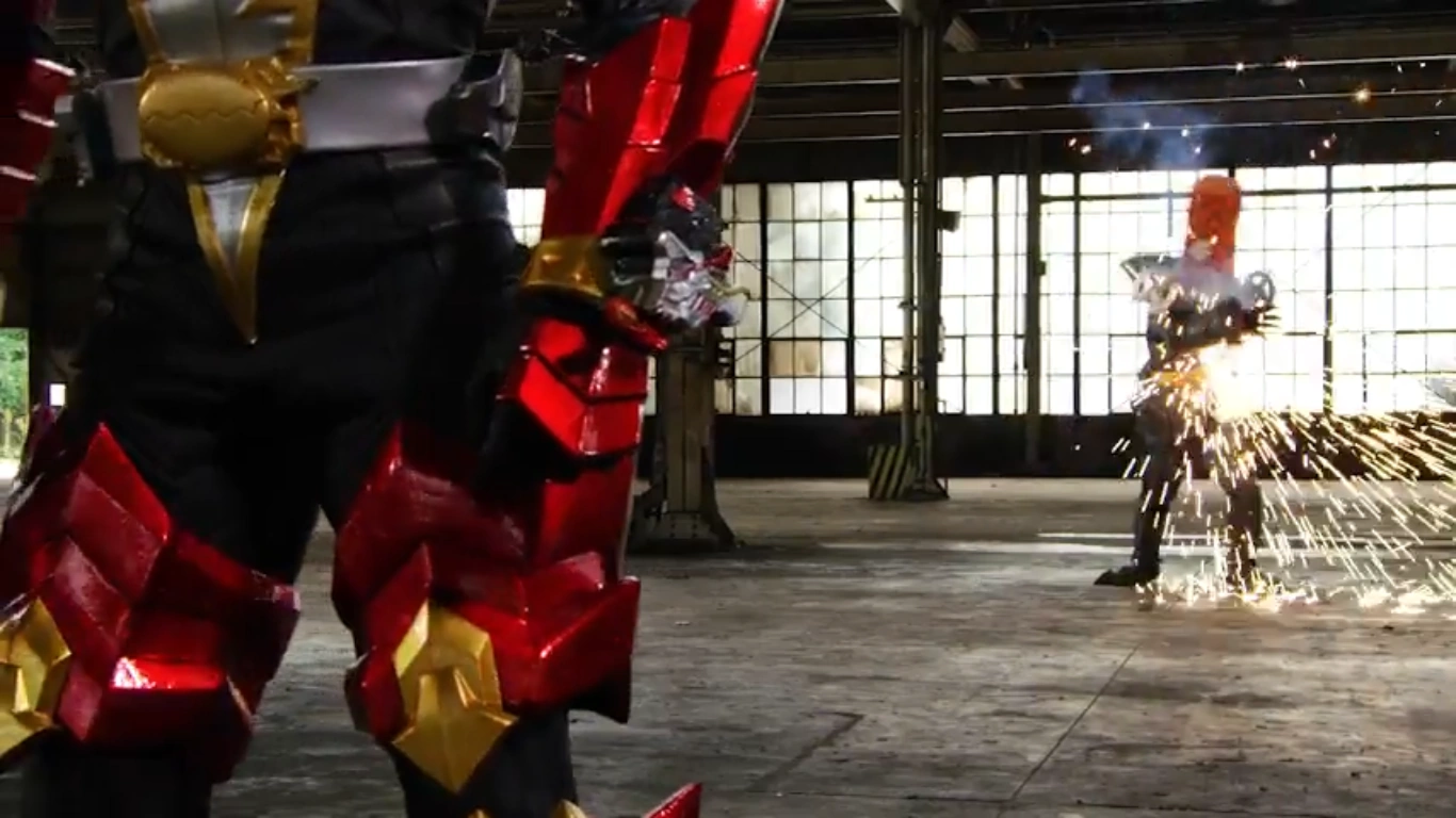 Uden spotted Koh, Melto and Asuna near an abandoned factory and warped them with a lightning attack from copying RyusoulGold's Final Thunder Shot finisher. Inside himself, Uden's manifestations fought each of the five trapped Ryusoulgers, copying more of their techniques until Bamba and Nada found him. Copying RyusoulRed's attack, Uden unleashed a flame slash at Bamba and Nada, forcing them to transform into RyusoulBlack and Gaisoulg. As his manifestations bested the trapped Ryusoulgers, Uden fought against RyusoulBlack and Gaisoulg, leading them in the empty factory and displaying another copied attack via the DoshinSoul before warping RyusoulBlack in his buckle, leaving Uden alone with Gaisoulg.