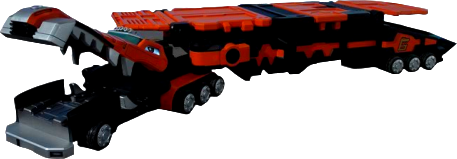 The Croc Carrierzord, usually simply called the Croc Carrier, is Ziggy and Dillon's remote Zord Attack Vehicle numbered 6 which is a hybrid of a crocodile and trailer vehicle. The Zord is divided in half while in storage and each of the Rangers have Engine Cells for their halves of the Zord. It can carry two or three smaller Zord Attack Vehicles on its back and be used as a ramp. It is the second unmanned/remote Zord Attack Vehicle and utilizes the Remote Flux Overthruster Core Reactor to function properly. The eyes of the Zord are actually Optical Field Scanning Sensors. When first created, its engine is the Brown B-8 which the Lion Hauler has; it is upgraded into the HY-2 for more horsepower.