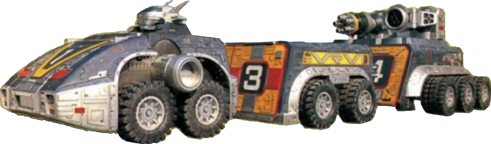 Victorailer is a three-trailer vehicle transport that holds the VRV Machines (some sources say that it can alternatively carry the Ranger Vehicles) until the command "Victorailer, launch!" is given. Victorailer is stored in VRV Master's headquarters underneath Tokyo Dome when not in use.