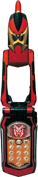When Heavenly Saint Blagel was restored, he gained the Fire WolzaPhone (ファイヤーウーザフォン Faiyā Ūzafon), which allowed him to transform into Wolzard Fire. It is a red version of the WolzaPhone that utilizes the "Super Heavenly Transformation!" (超天空変身 Chou Tenkū Henshin) spell Goolu Golu Golu Goludiiro.