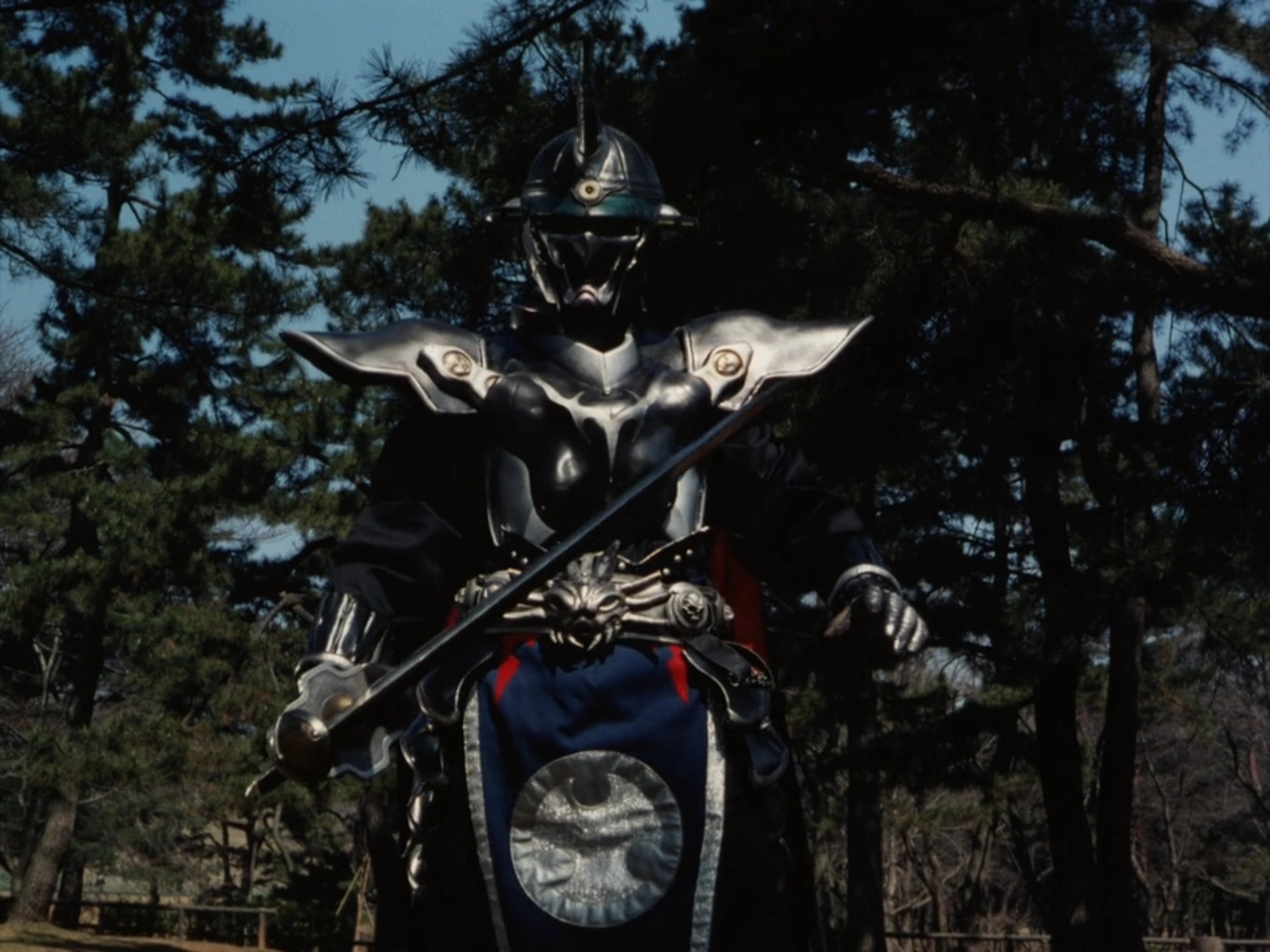 - Zaigan is a repaint and hybrid of various parts of Sentai villains suits like the kabuto, thigh guards, and gauntlets of Dark Bohma Zimba and the armor of Yamimaru's red armored form (with his battle mask replacing the menpō on Zimba's kabuto), both from Turboranger and the waist armor of Iron Face Chouryou from Dairanger, with the addition of a purple loincloth, a red cape, and a third eye on the helmet's forehead.