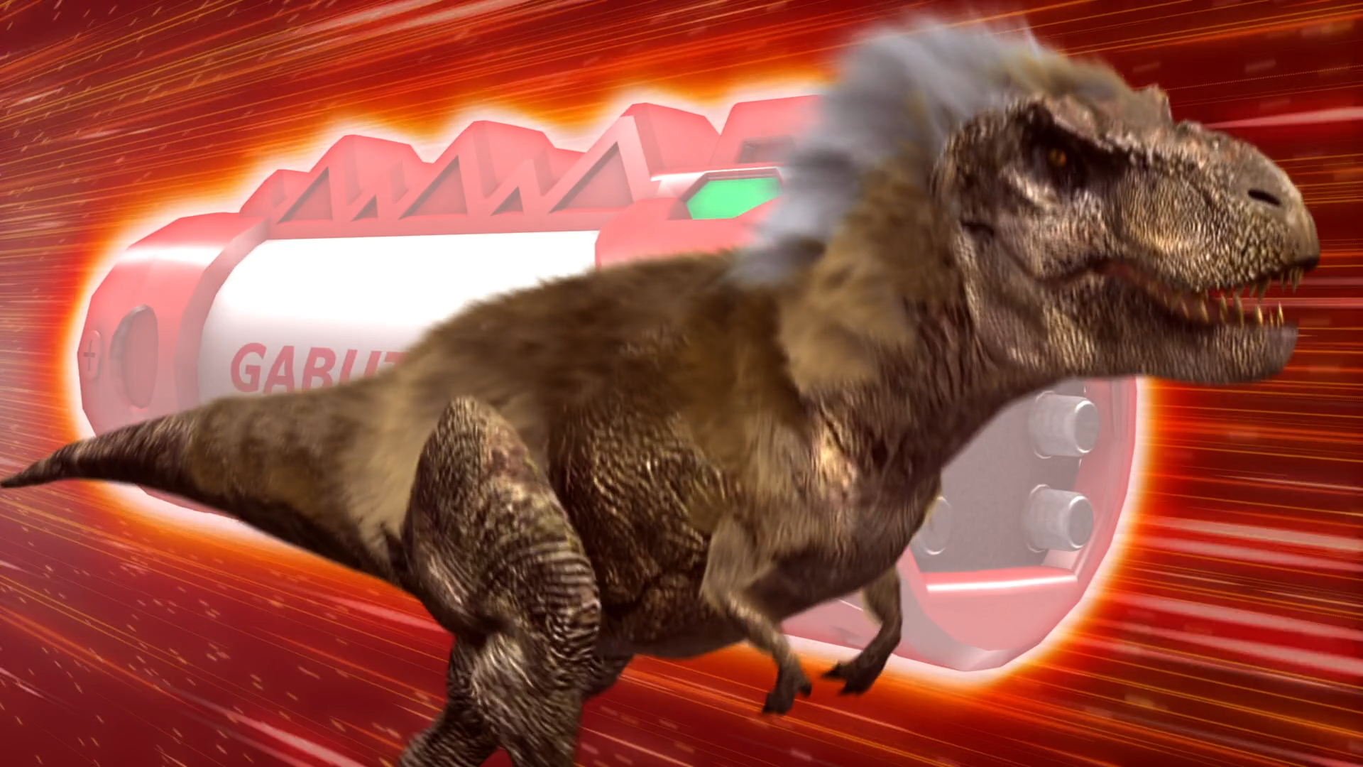 Zyudenryu Gabutyra (獣電竜ガブティラ Jūdenryū Gabutira) is the Tyrannosaurus rex-themed Zyudenryu who became Kyoryu Red's partner. Its number is "1".
